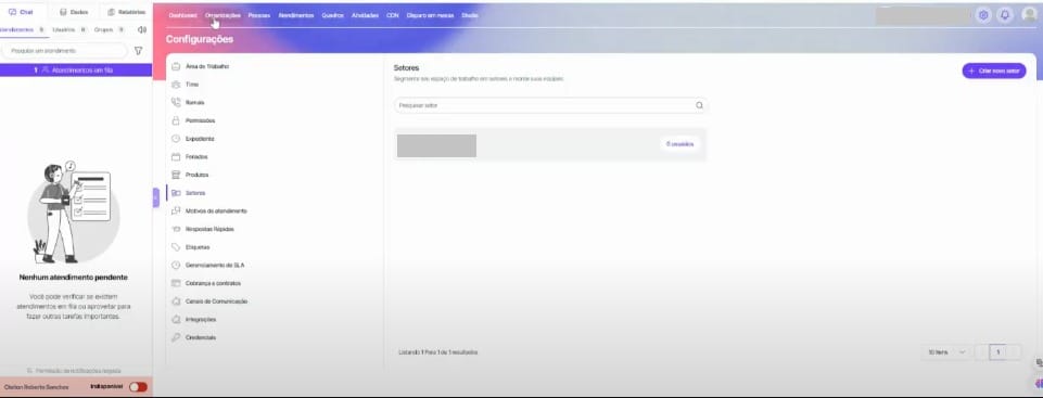 5. Tudo certo! Seu setor foi criado no Studio Hablla, e agora você está pronto para organizar suas interações de maneira ainda mais eficiente.