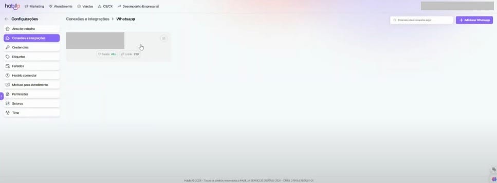6. Clique em Conectar ao WhatsApp para dar o próximo passo rumo à integração!
